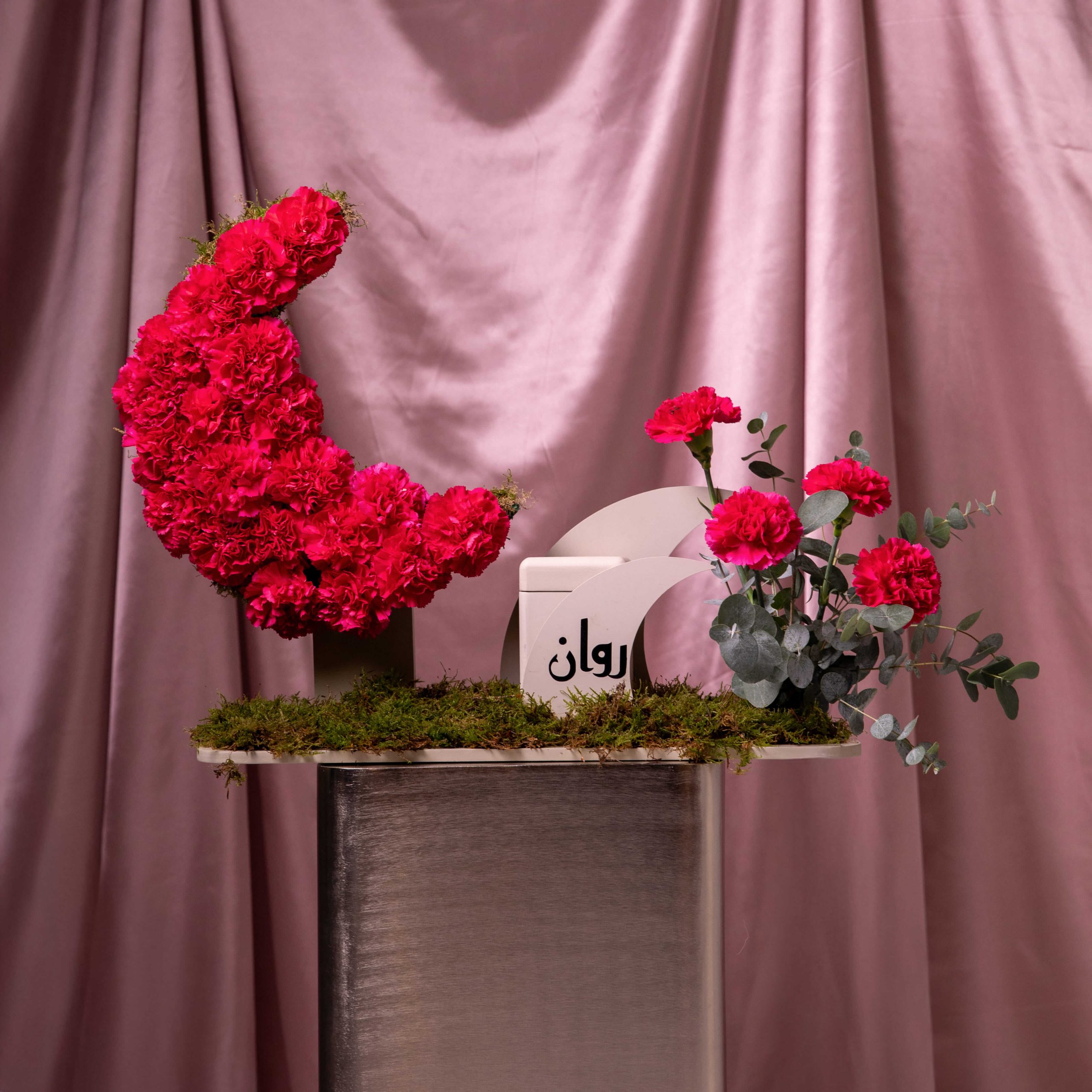 هلال من الورد و مبخر مع كتابة الاسم