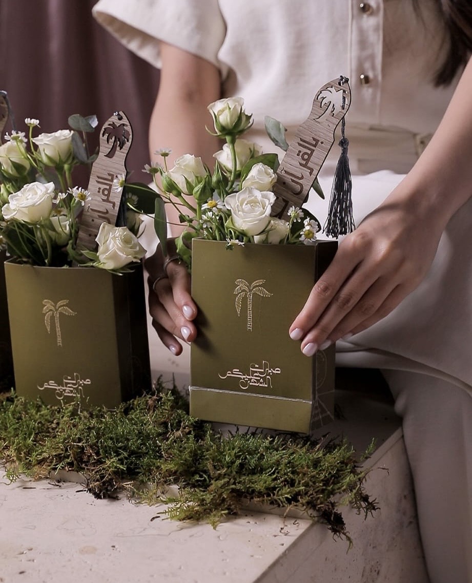 10 Bags each bag contains a Quran stick with ( ورتل القرآن ترتيلا ) with flowers and customized the name on it.