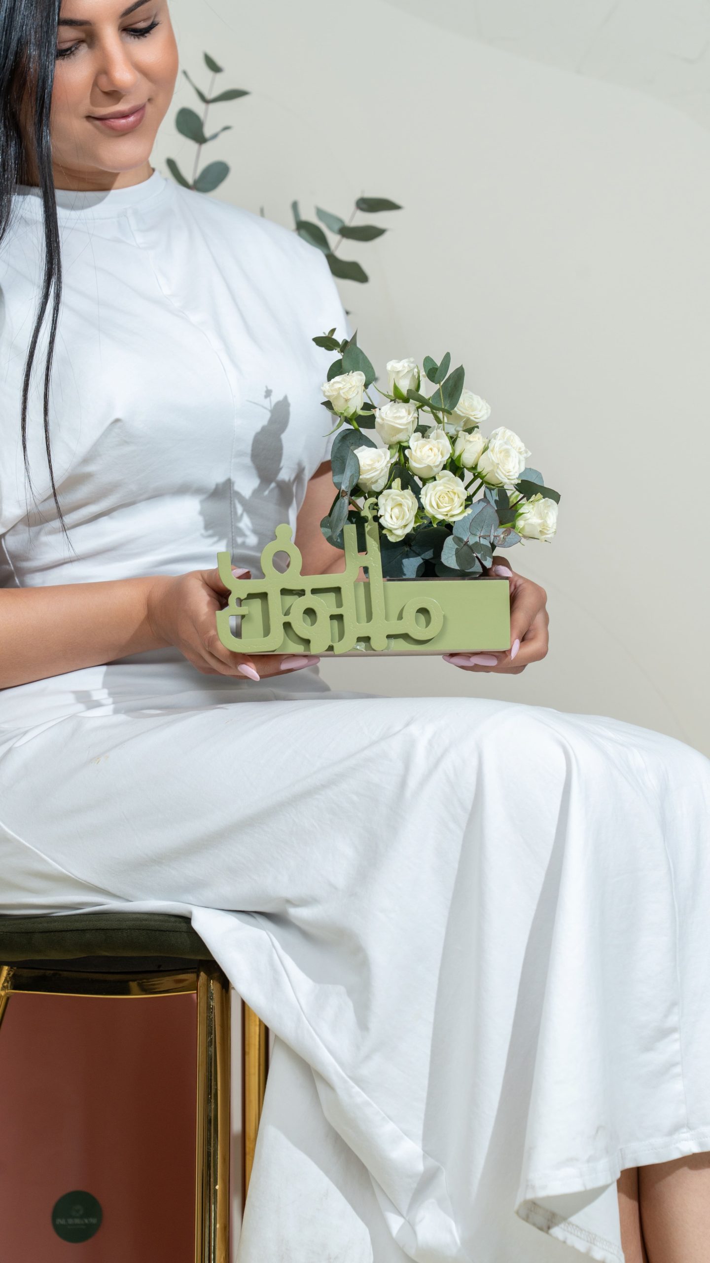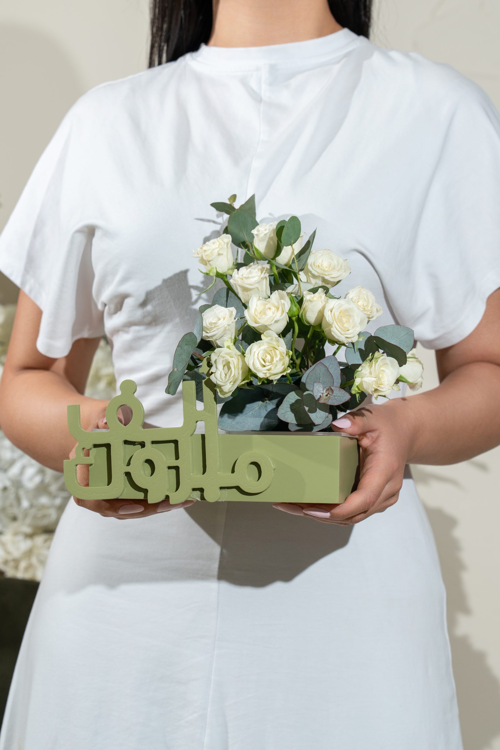 Flowers used : white baby rose , eyclptus