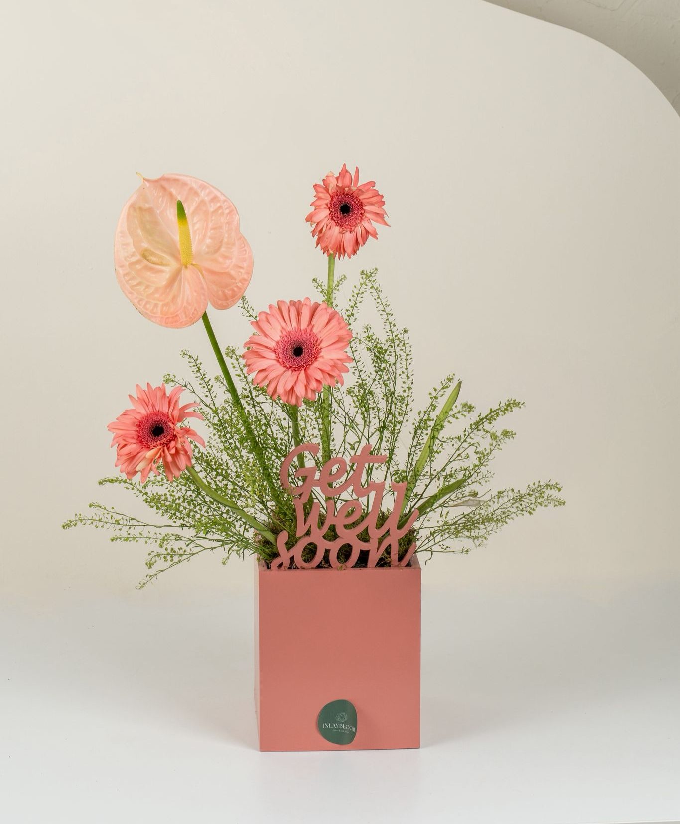 Flower used : peach gerbera , lipiduim , pink antheruim